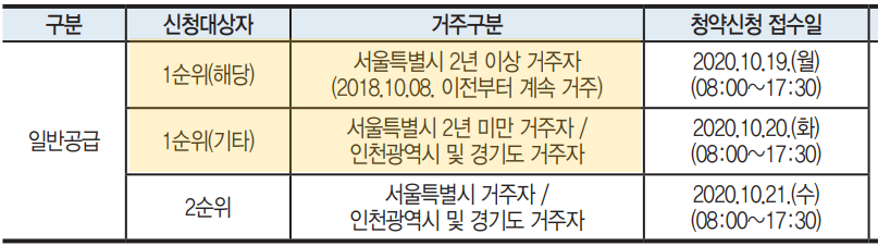 2년연속, 2년미만 및 수도권 지역에 거주하는 만 19세 이상인자 그리고 세대주인 미성년자입니다. 아파트 청약에 도전하는 대부분이 성년이기 때문에, 일단 수도권에 거주하는 것만으로도 일반공급에 지원할 수 있습니다. 만약 내가 지방에 살고 있다면 수도권의 아파트에는 지원조차 할 수 없다는 사실! 기억하셔야 합니다.