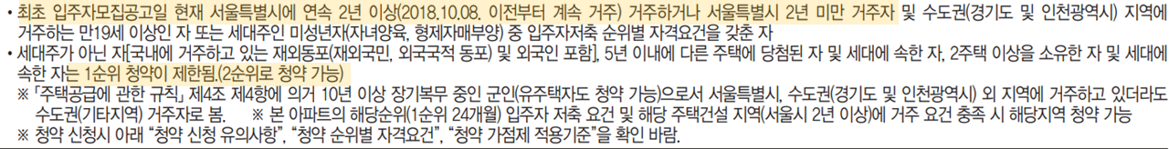 수도권 거주 무주택세대주> 높은 가점 > 당해지역 2년거주